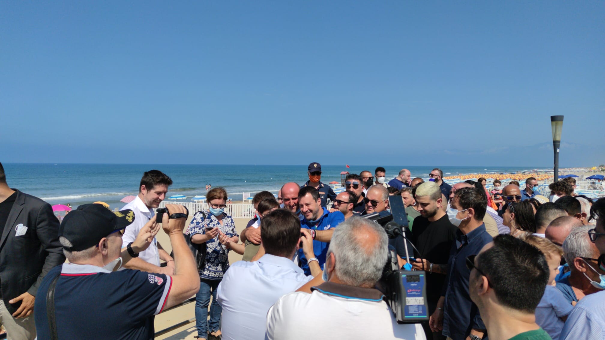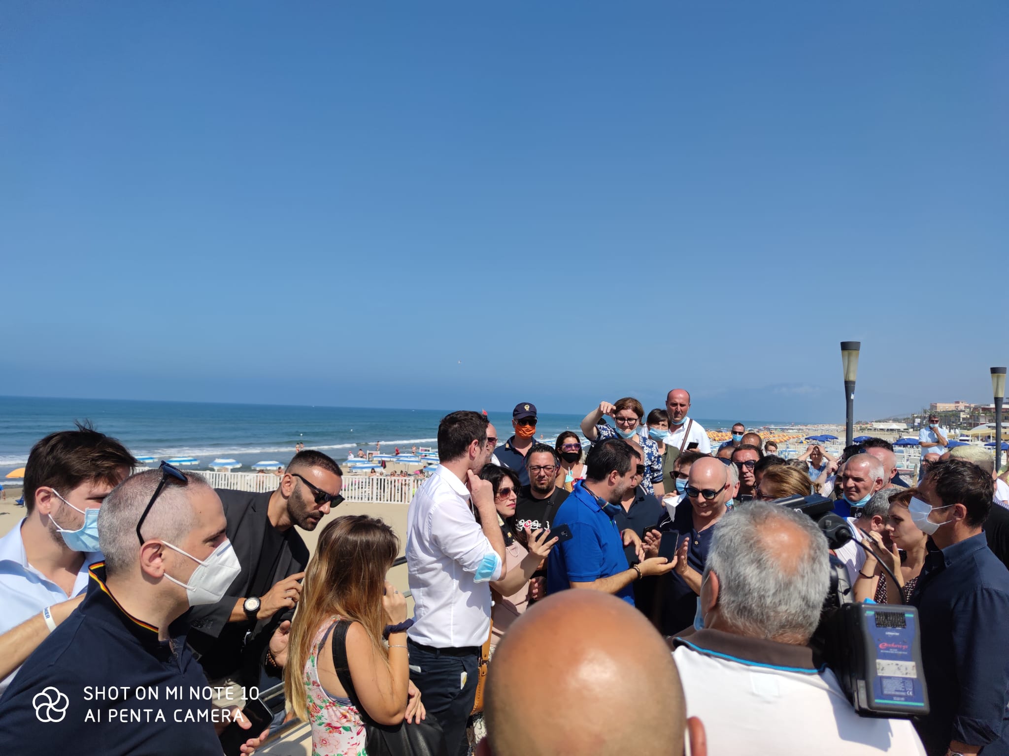 MONDRAGONE – C’era un conto da regolare a Mondragone. Salvini non aveva potuto fare il suo comizio, impedito dalle contestazioni rumorose e anche un pò borderline di un gruppo di persone arrivate per la maggior parte da Napoli e fiancheggiate da qualche esponente politico del centrosinistra di Mondragone. Per cui, stamattina è ritornato. La cosa era già nota ieri sera ed è stata tenuta però abbastanza riservata dai vertici della Lega casertana e campana, i quali fattisi forti dell’esperienza vissuta, hanno lavorato sotto traccia solo alla mobilitazione di propri supporters. Va ricordato, al riguardo che a Mondragone, con il passaggio di Gianpiero Zinzi nel partito di Salvini, si è creato un forte nucleo di sostenitori capeggiato dall’ex sindaco Giovanni Schiappa, al quale non manca certo la possibilità di poter mobilitare persone rispetto ad un appuntamento politico. Queste foto ritraggono Salvini mentre si intrattiene con i suoi sostenitori in piazza Liberato Mario Conte e con alcuni cittadini comuni sul lungomare.