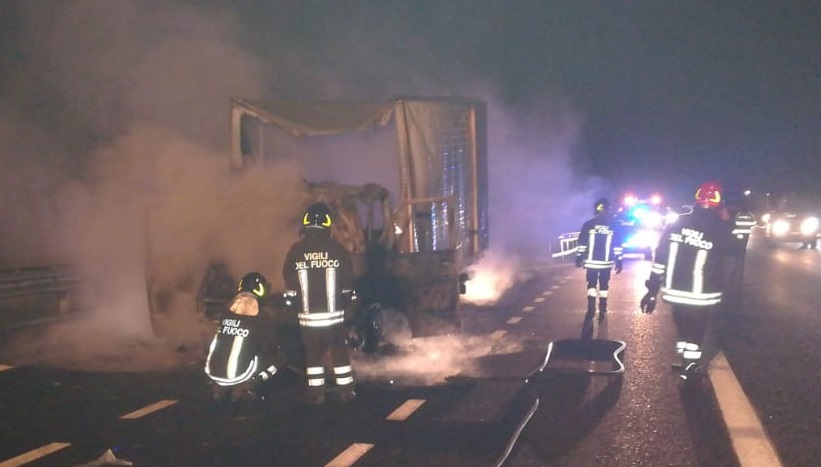 LE FOTO. PAURA IN AUTOSTRADA. A una passo da Capua e S.Maria C.V, furgone a fuoco sull’A1