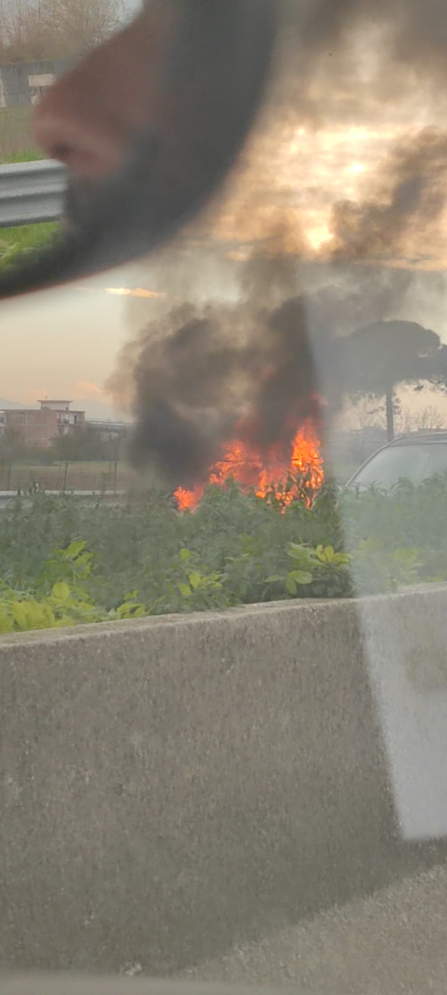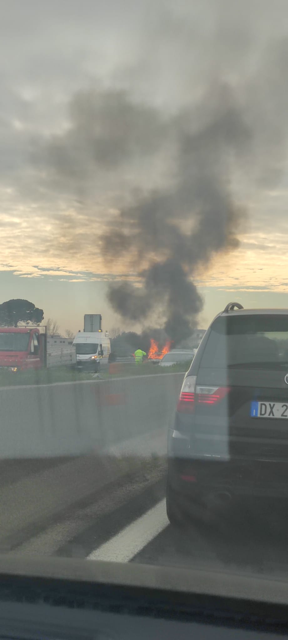 LE FOTO. PAURA IN AUTOSTRADA. Auto avvolta dalle fiamme. Verso il CAMPANIA e l’OUTLET Coda di 3 km