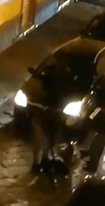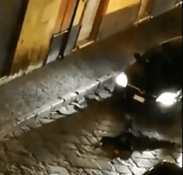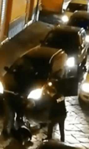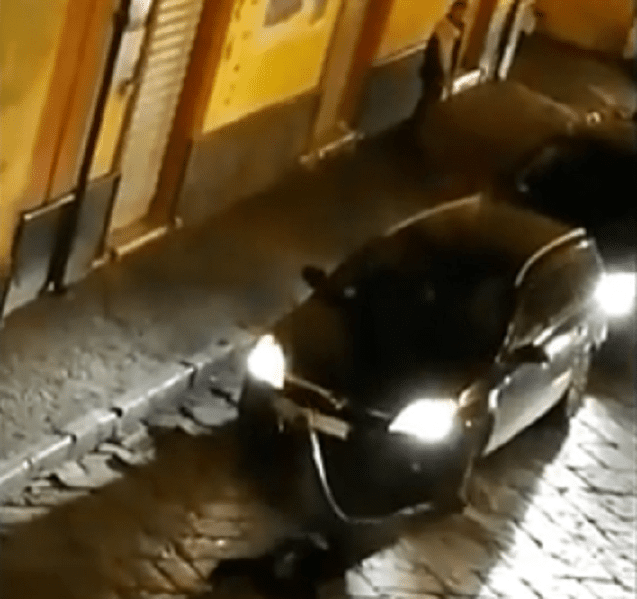 Ad un certo punto forse non ottenendo l’attenzione dei passanti, si è lanciato sul cofano di una auto che in quel momento transitava, a bordo della stessa vi era una famiglia. Gli occupanti della vettura hanno assistito alla scena inermi e spaventati.