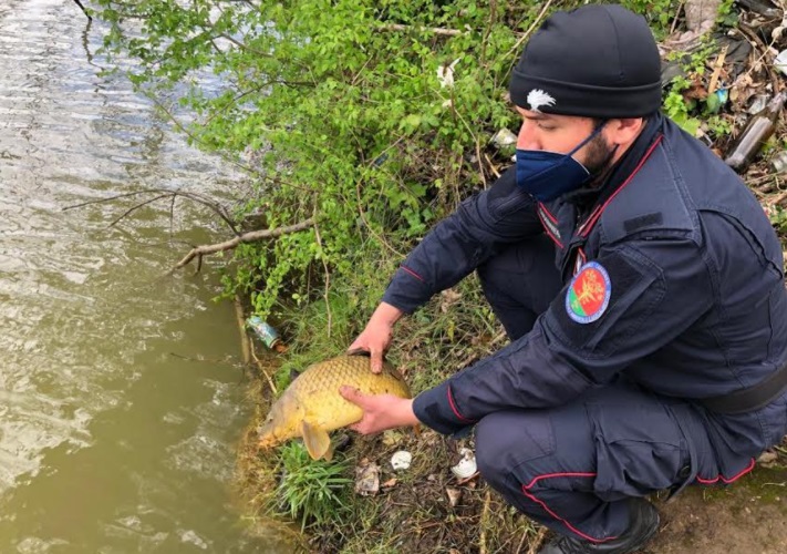 Si provvedeva a salpare la rete in nylon a tramaglio e, dopo averla issata a terra, veniva riscontrato che all’interno della stessa, erano rimasti intrappolati diversi pesci, ancora vivi, appartenenti alla specie Carpa Comune (Cyprinus carpio) e Carassio Comune (Carassius carassius). Nell’immediatezza si procedeva a rimuovere i pesci dalla rete e a liberarli nelle acque dell’oasi di protezione.