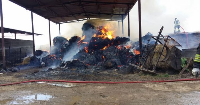LE FOTO. Rogo in un’azienda agricola. Rotolballe a fuoco