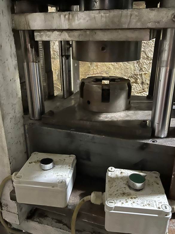1 macchina industriale tipo pressa idraulica, senza marca, di costruzione artigianale;