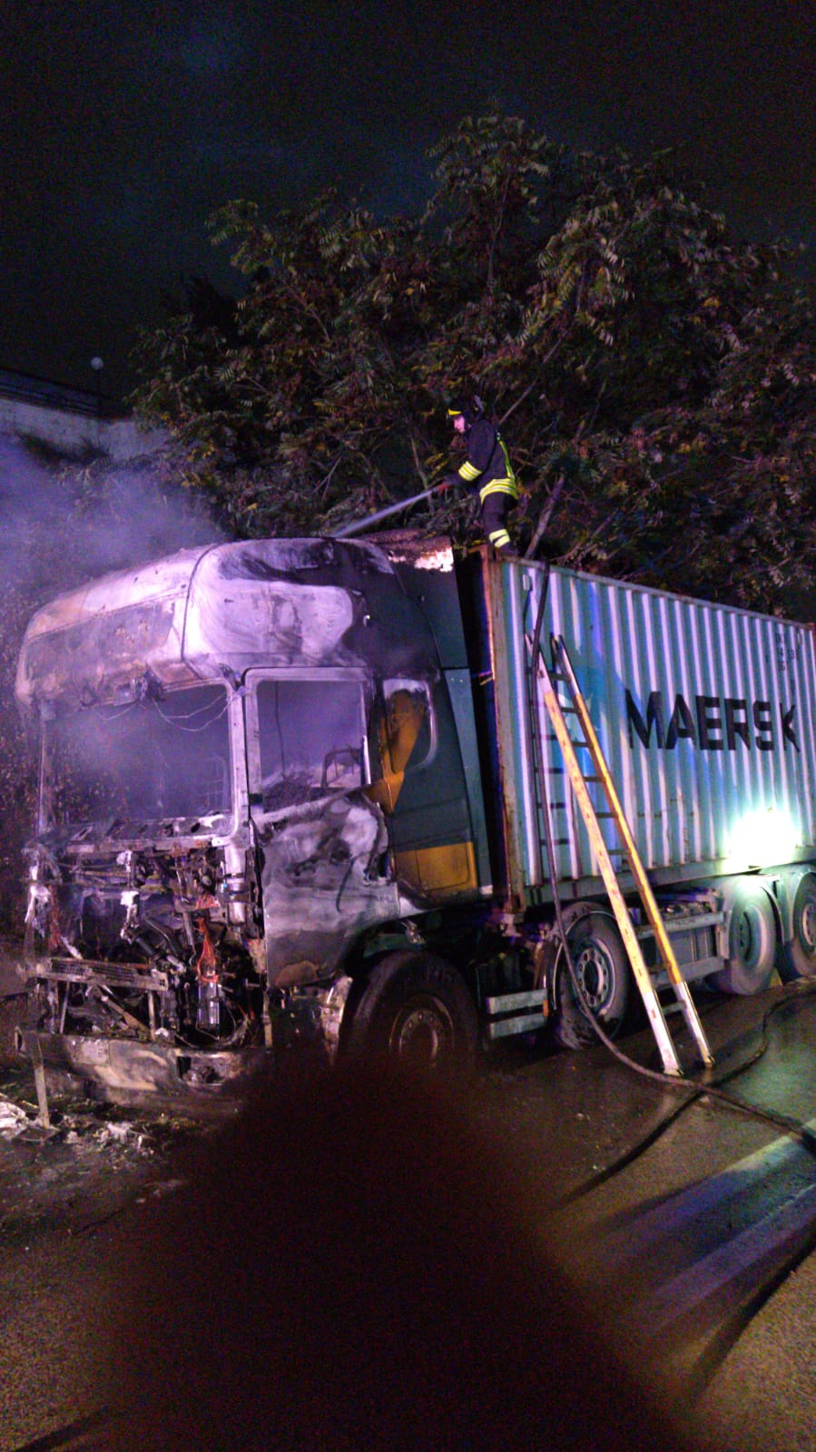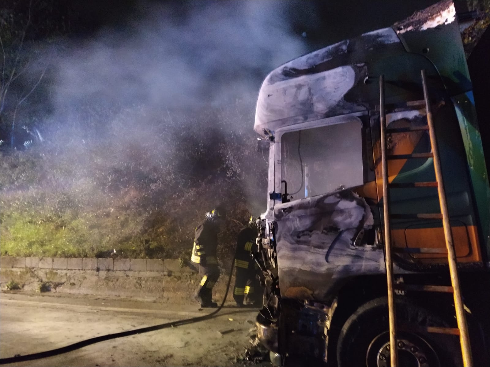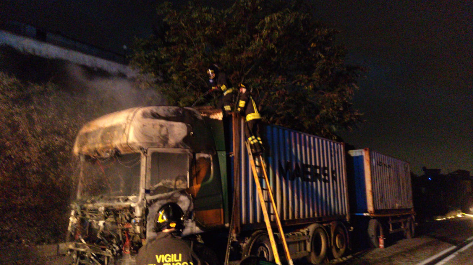 LE FOTO. Si incendia un camion ai Ponti della Valle