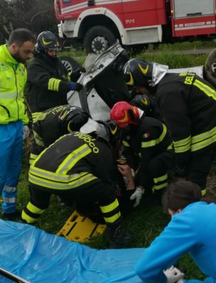 Sul posto, in poco tempo, si è portata una squadra dei vigili del fuoco di Mondragone che ha lavorato diverso tempo per estrarre il conducente rimasto ferito. L’uomo è stato trasportato dai sanitari del 118 in ospedale.