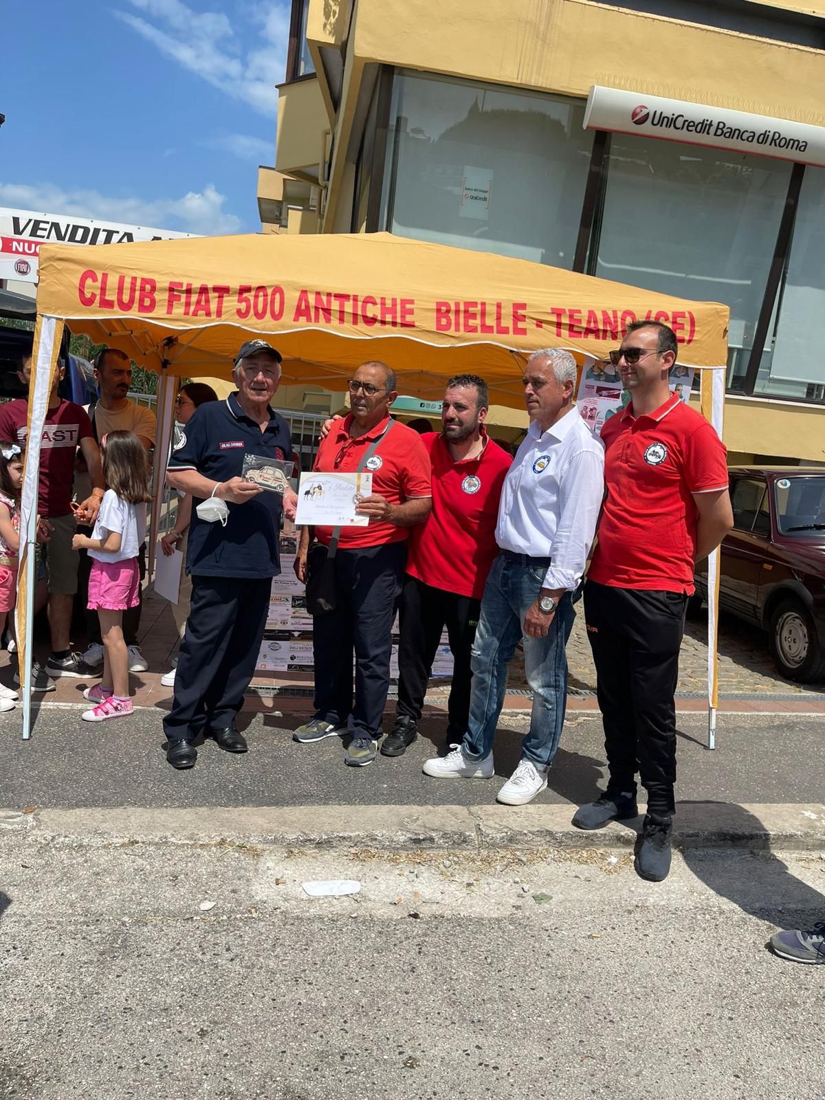 TEANO (Pietro De Biasio) Tornano a sfilare per le vie di Teano le “500 d’epoca”. Il raduno dell’utilitaria Fiat forse più famosa al mondo si è svolto domenica 29 maggio con ritrovo in piazza Sperandeo. Iniziativa fortemente voluta dal Club “Fiat 500 Antiche Bielle” nella persona del presidente Franco Caparco, Alfredo Cotugno, Armando De Pari e Fabrizio Tizzano. All’appuntamento, aperto non solo alle 500, hanno risposto circa 150 auto e moto d’epoca provenienti non solo dalla provincia di Caserta e dai comuni limitrofi ma anche da Napoli, Roma e Frosinone. Dopo un giro per le strade al suono del suo inconfondibile clacson, il corteo ha fatto tappa nel centro storico e successivamente al Museo Archeologico di Teanum Sidicinum. Brevemente ricordiamo che la Fiat 500 fa parte della storia automobilistica italiana, l’immagine culturale dell’Italia del dopoguerra che voleva rialzarsi ed è giusto che gli venga dato il riconoscimento che merita. Iniziative come questa non possono che essere plaudite. Un ringraziamento agli organizzatori e ai partecipanti che hanno reso possibile questo evento.