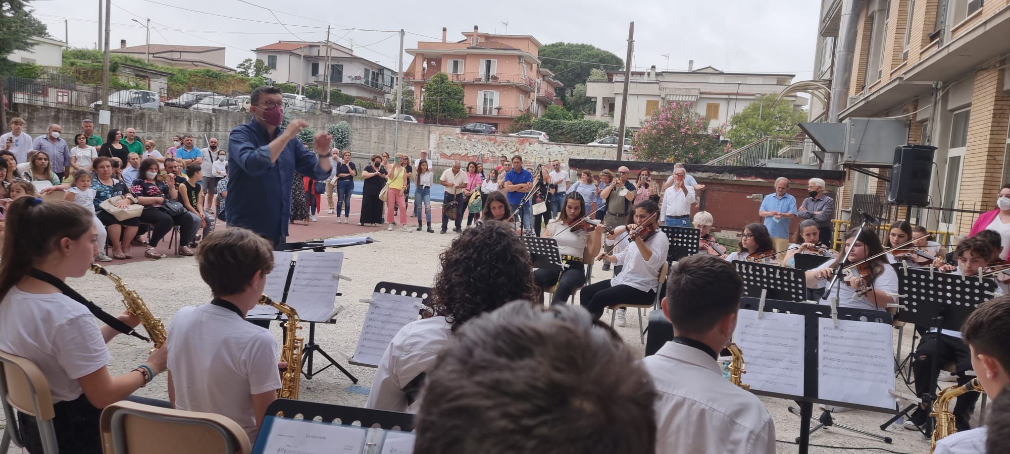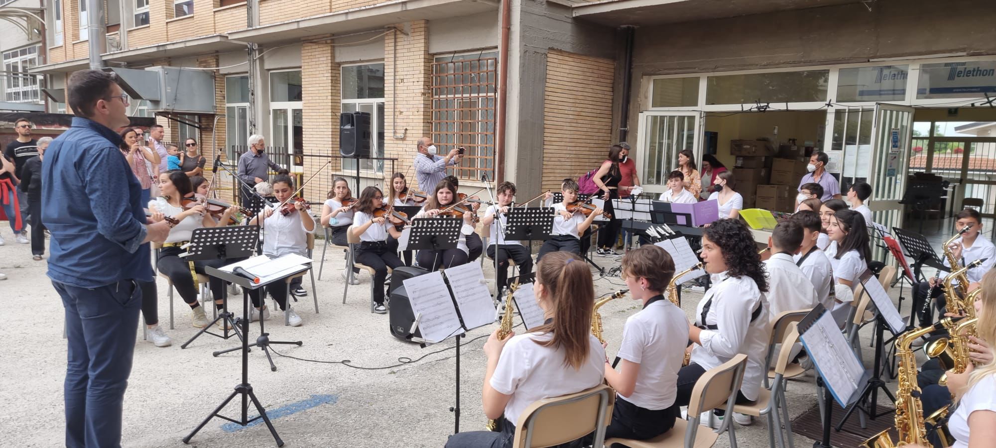 TEANO – (Pietro De Biasio) Straordinaria performance degli alunni dello strumento musicale dell’Istituto Comprensivo Statale “Vincenzo Laurenza”. Il concerto di fine anno scolastico dal titolo “Note Insieme” ha rappresentato il punto conclusivo di un intero anno di studio e tutti gli alunni hanno potuto confrontarsi con i grandi musicisti delle diverse epoche dimostrando il proprio tasso tecnico ed interpretativo. Diretti dai loro docenti Marcella Caiazza, Gianmarco Compare, Nunzio Franza e Luigi Zanni gli allievi hanno dato vita ad uno spettacolo che ha entusiasmato il pubblico presente, proponendo momenti di elevato livello artistico. Presente anche la Dirigente Scolastica Ing. Fiorella Musella che sostiene sempre con grande forza, passione, competenza e professionalità tutte le attività dell’istituto sidicino. Il concerto è stato supportato dai contributi della DSGA Mariella Melucci, il prof.re Carmine Martuccelli, la prof.ssa Mariapia Giacomobono (funzione strumentale) per la realizzazione della splendida brochure, i collaboratori scolastici Walter Mancini e Giovanni Gioia, preziosissimi per il loro sostegno pratico e organizzativo.