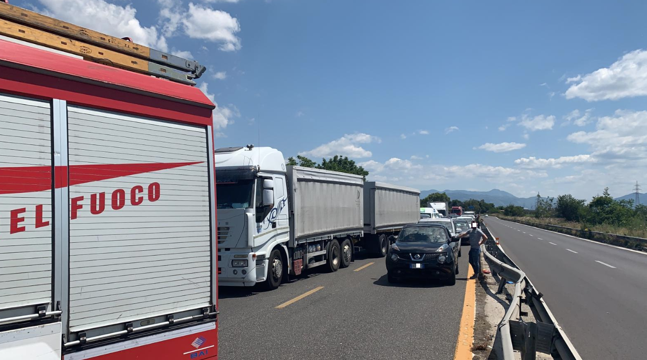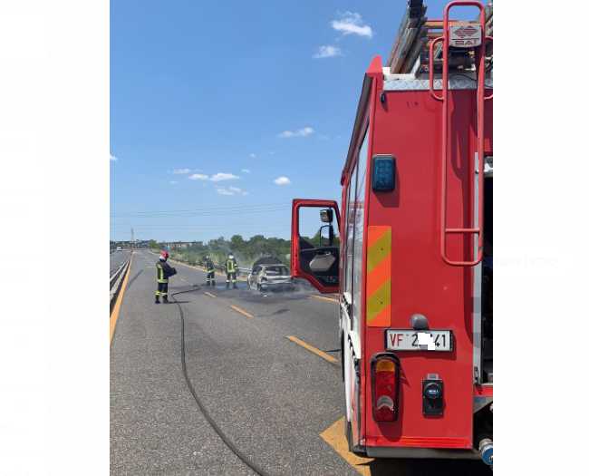 LE FOTO. Traffico rallentato per un’auto a fuoco lungo la Superstrada