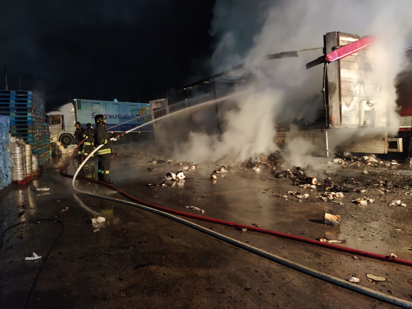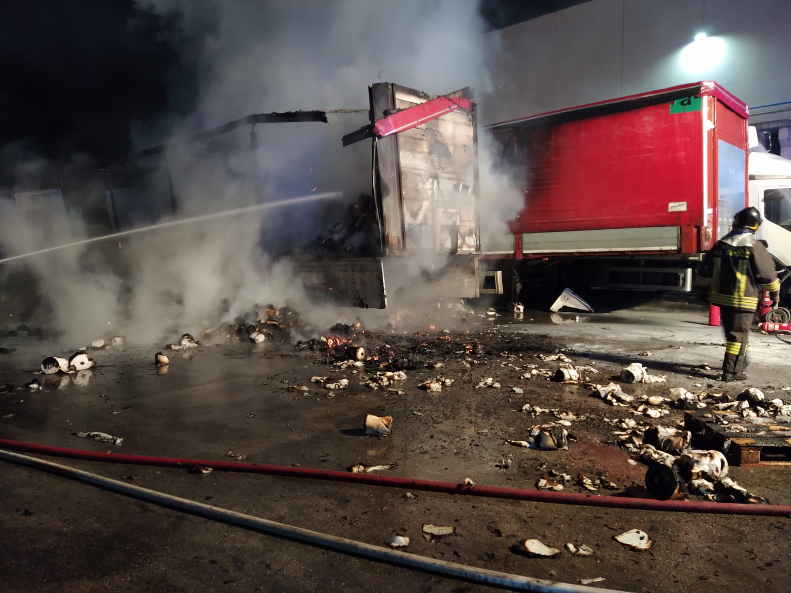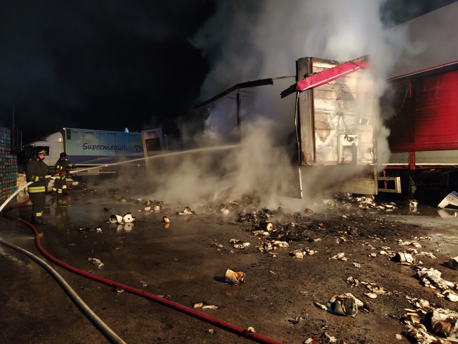 LE FOTO. Va a fuoco un tir davanti al deposito di un Decò