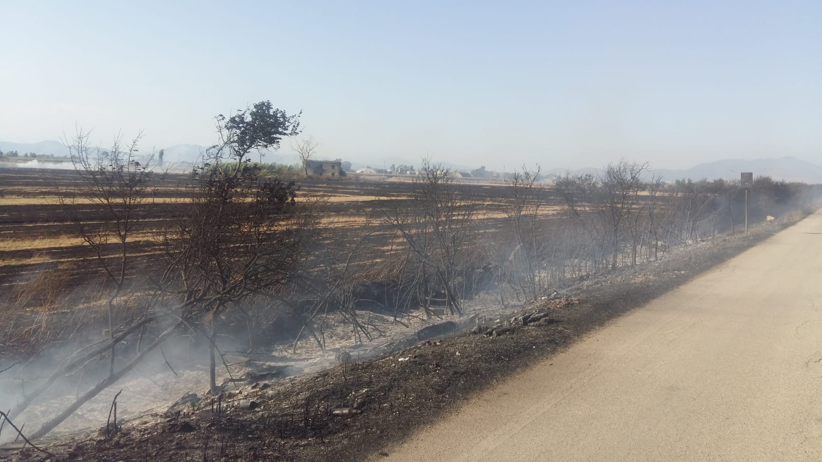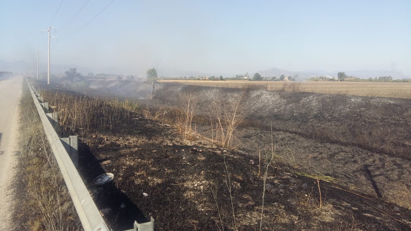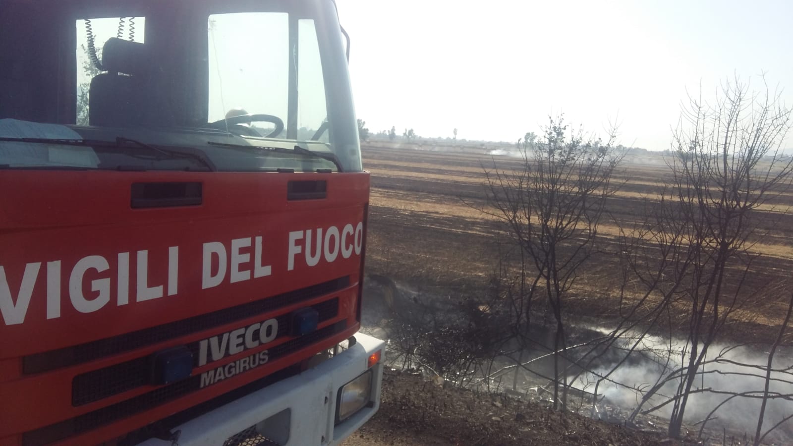 LE FOTO. Vasto incendio in un campo agricolo, il fuoco raggiunge 2 persone. Tempestivo intervento dei vigili del fuoco
