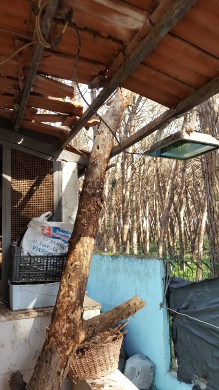 Attimi di paura per S.G. che in quel momento stava sistemando la legna per il camino come lei stessa ci riferisce: “Ho sentito un forte boato e dopo un attimo di smarrimento ho realizzato che un albero aveva colpito il tettuccio di casa, in corrispondenza della zona adiacente la cucina dove ho la cuccia dei cani, che non erano in casa, e dove c’è il deposito per la legna. Sono stata davvero fortunata solo perché in quel momento mi ero spostata dal punto in cui l’albero ha colpito la stanza perché appoggiavo la legna nel camino, altrimenti non so come sarebbe finita”. E’ stata davvero miracolata assieme ai suoi tre cani la signora S. che punta il dito sulle responsabilità che ci sono dietro a questa tragedia sfiorata: “Beh, visto che non sono stata capace di sapere chi sono i proprietari di questi alberi, malati da diverso tempo e che ho segnalato dall’anno scorso alle autorità competenti, mi chiedo a questo punto cosa sarebbe accaduto se mi fosse successo qualcosa e chi ora pagherà i danni che ha subito la mia proprietà”.