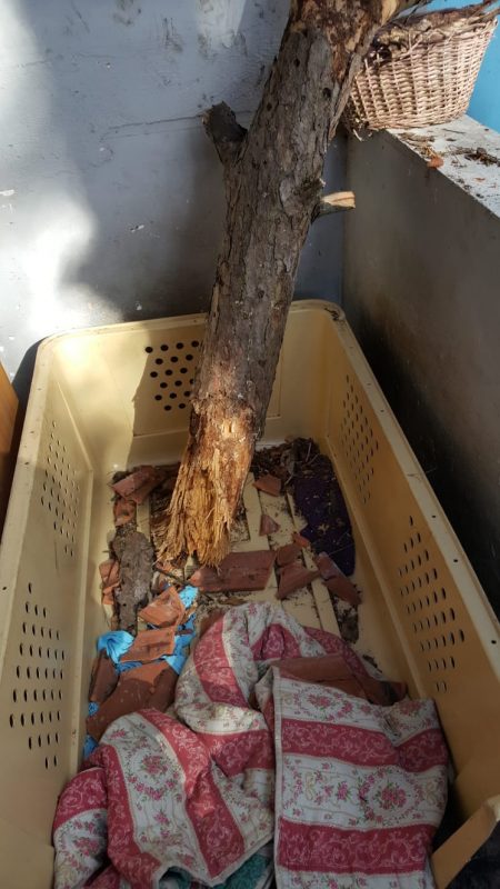 LE FOTO VENTO DI GRECALE SENZA PIETA’ CASTEL VOLTURNO. Grosso ramo si stacca e si conficca nel tetto di una casa. Donna viva per miracolo