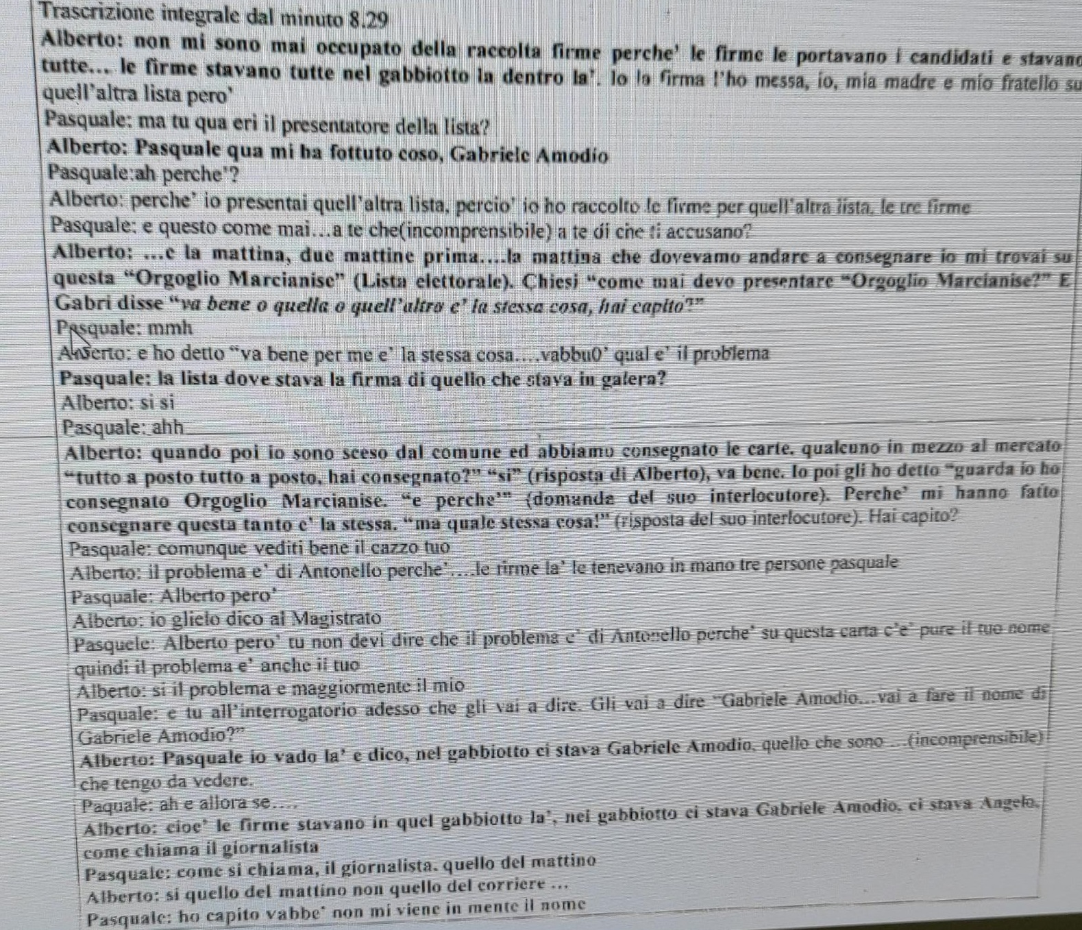 E qui ci rivolgiamo ai marcianisani. Voi appartenete ad una città con una marcata identità, dunque, vi conoscete tutti. Leggendo questa intercettazione, ritenete verosimile che Alberto Tartaglione e Pasquale Bellopede, sapendo di essere intercettati, hanno individuato nei signori Gabriele Amodio e Franco Agrippa due soggetti da accusare per scaricare le proprie repsonsabilità?
