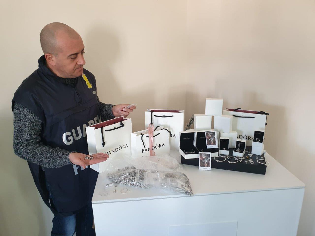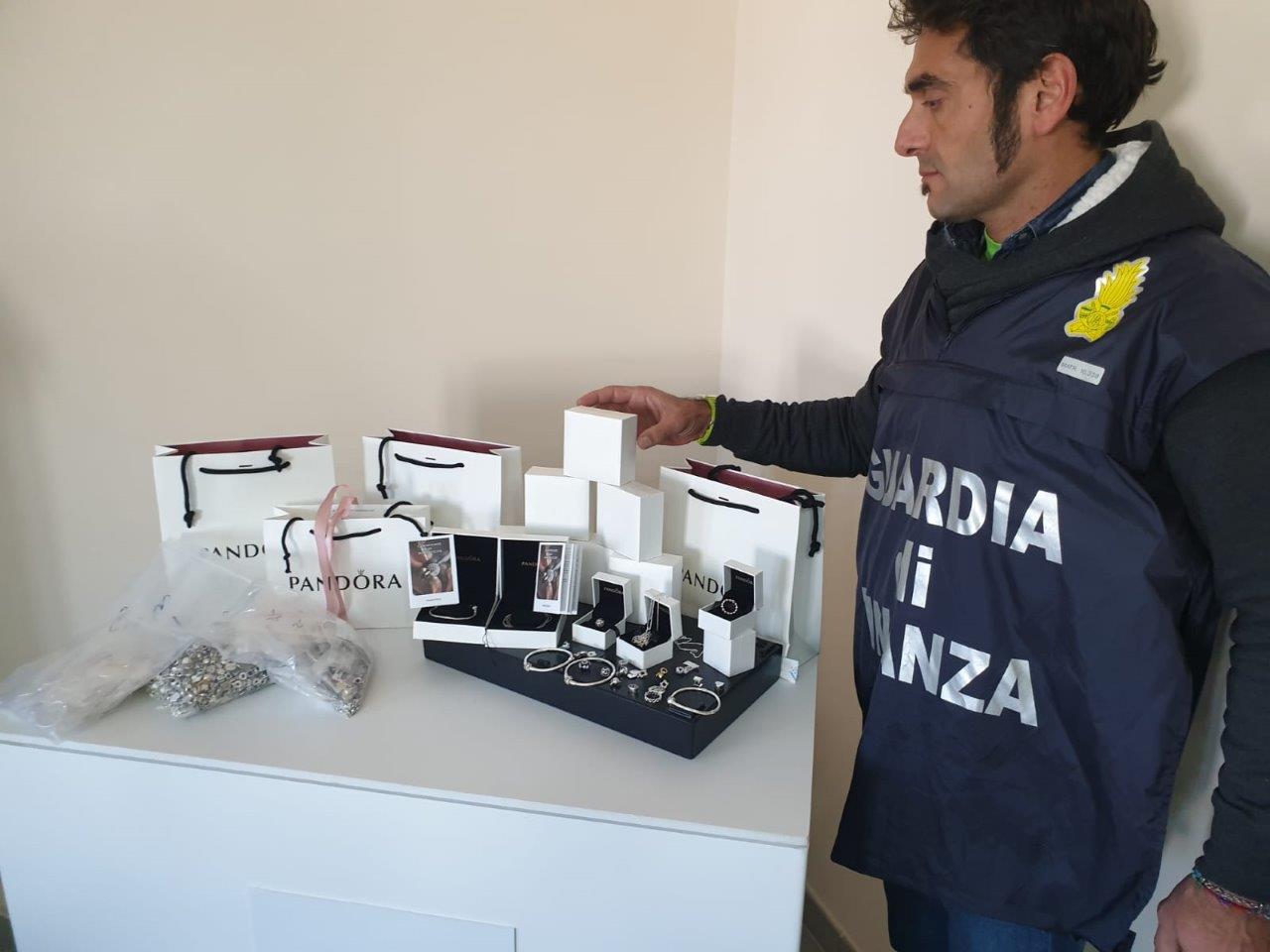 MARCIANISE – La Guardia di Finanza di Marcianise, nell’ambito dell’attività di controllo economico del territorio finalizzata all’individuazione di laboratori e opifici abusivi, nella giornata di ieri ha scoperto un magazzino occulto ubicato a Marcianise e utilizzato per lo stoccaggio di gioielli contraffatti a marchio “PANDORA”, venduti illegalmente da un commerciante operante all’interno del noto centro orafo “Il Tarì”. Sequestrati 2.860 monili riportanti i disegni industriali e/o il logo contraffatto, oltre a quasi 900 articoli utilizzati per il loro confezionamento.