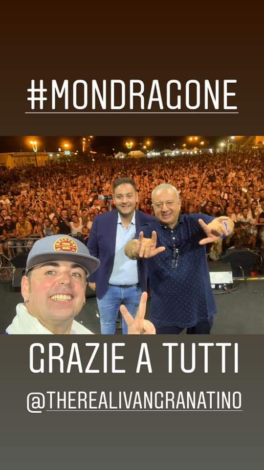 MONDRAGONE (Maria Assunta Cavallo) – Piazzale Conte gremito ieri sera in occasione del concerto di Ivan Granatino, organizzato dal Direttore Artistico Aldo Santamaria e dal Consigliere Comunale Marco Pacifico. Un rapper che ha stupito anche i più scettici con una magistrale interpretazione di alcuni brani del suo repertorio artistico. Una esibizione tra l’altro accompagnata da strepitosi effetti scenici e che ha fatto divertire soprattutto i giovani, moltissimi dei quali, giunti dalle città limitrofe. Soddisfatti gli organizzatori per un risultato andato oltre ogni aspettativa.