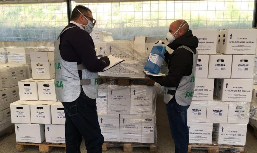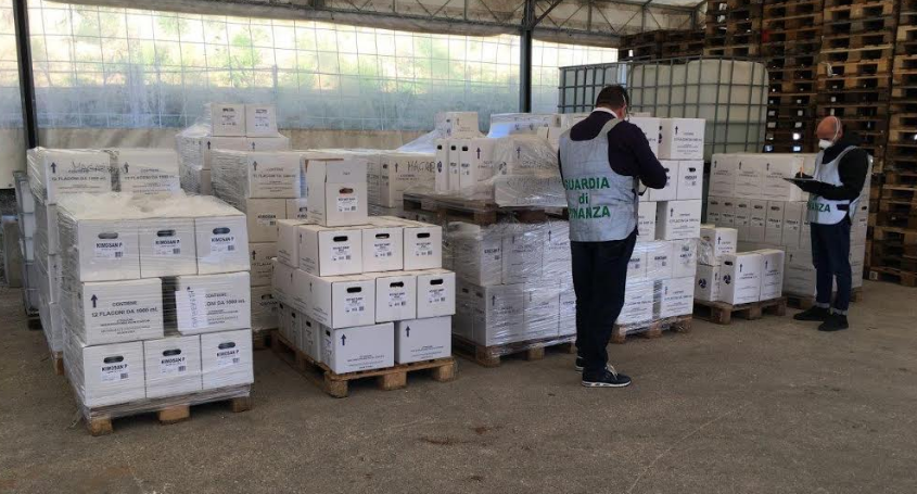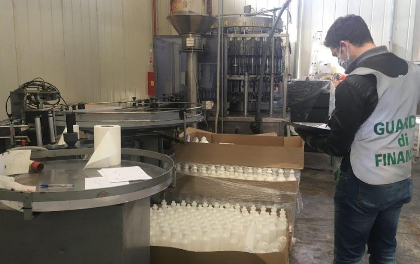 In particolare sono stati sequestrati oltre 9.000 litri di disinfettante liquido per superfici