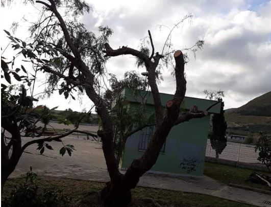 MONDRAGONE (Maria Assunta Cavallo) – A contattarci è stato un residente di via Fiumara, A.N. che ci ha segnalato l’orrenda potatura eseguita su alcuni alberi rimasti “mutilati”. Molti di questi vennero piantumati tempo fa, a spese di questo cittadino amante della natura, riuscendo a creare una ricca vegetazione che ospitava piante di ulivo, gelsi, e di noci, a ridosso dell’area mercato. Una piccola macchia verde distrutta dalla mano dell’uomo. In molti hanno pensato ad un intervento programmato dal Comune di Mondragone al punto da far intervenire l’Assessore Maria Rosaria Tramonti, che giunta sul posto ha poi verificato quanto successo.