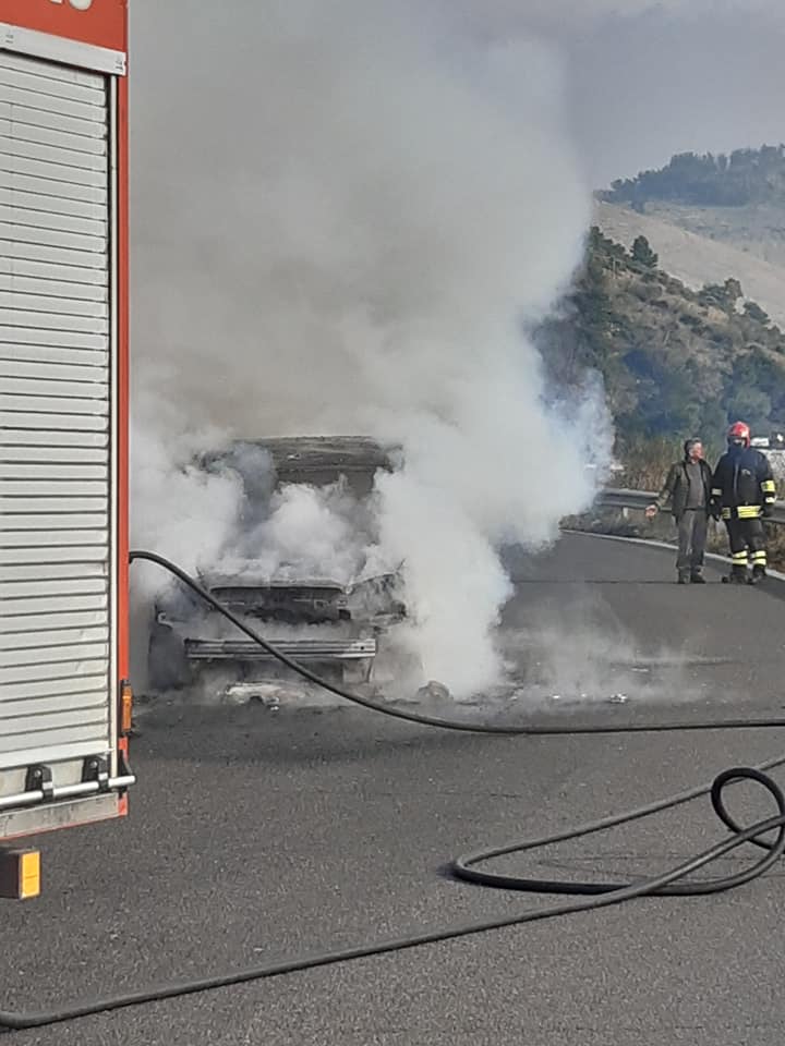 PUCCIANIELLO. LE FOTO. Auto prende fuoco in strada, in fuga gli occupanti