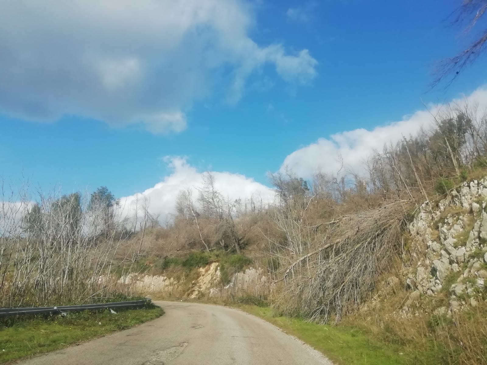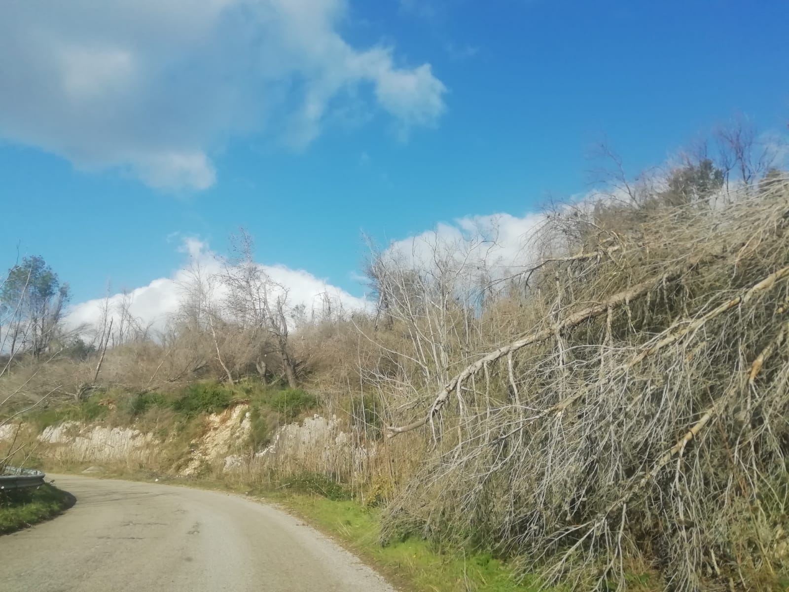 Una scena davvero triste, quella che si presenta in questa area, una volta il polmone della città. La strada asfaltata al momento è quasi impercorribile, letteralmente invasa dai rami degli alberi.
