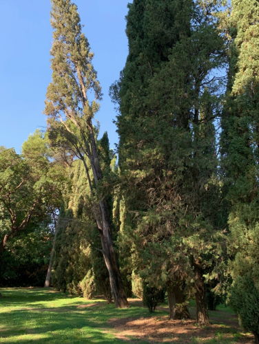Il gruppo di lavoro ha osservato nel Giardino Inglese, alcuni cipressi del doppio filare attaccati dalla vite americana: un rampicante infestante che andrebbe rimosso senza indugio liberando la pianta ospite, fortemente sofferente, dalla folta vegetazione del rampicante. Le serre sono state trasformate impropriamente in location per la vendita di piante commerciali prodotte altrove. Superfluo aggiungere che anche il Giardino Inglese soffre della carenza idrica con vasche che presentano acqua stagnante e marcescente, presenza di alghe, fauna ittica in sofferenza, dovuta alla mancanza di adduzione dall’acquedotto Carolino, tema già affrontato e abbondantemente segnalato senza esito.