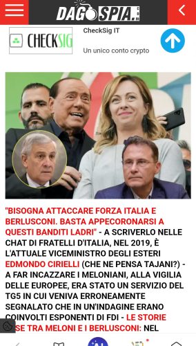 Pubblichiamo il comunicato stampa ripreso dall’ANSA del neo candidato alla carica di Presidente della Regione Campania per il centrodestra, e riproponiamo l’articolo di Dagospia uscito nel febbraio scorso, sito guidato da un grande intellettuale italiano che fa riferimento preciso alla chat Whatsapp di Fratelli d’Italia, scrivendo il “messaggio” inviato nel 2019 proprio da Edmondo Cirielli