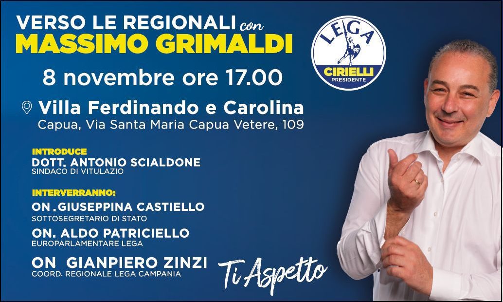 Massimo Grimaldi ha scelto Ferdinando e Carolina a Capua come location per il suo evento elettorale. In passato, il locale ha già ospitato importanti eventi politici, e oggi sarà teatro della presentazione della candidatura di Grimaldi alle elezioni regionali.