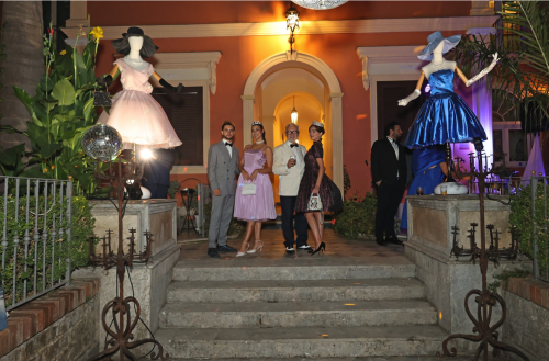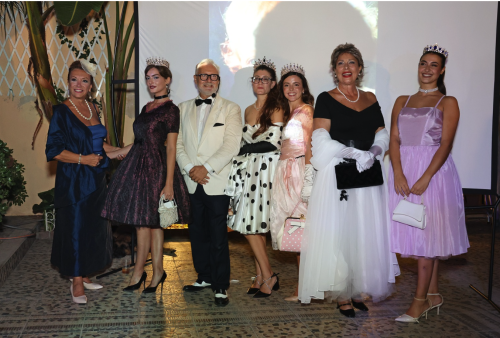 Sulle terrazze del Palazzo San Carlo sono stati posizionati dei grandi pannelli con i video e le canzoni dell’epoca. Gli ospiti si sono scatenati in rock and roll, swing, twist, cha cha cha, surf, shake, mambo e molti altri balli del tempo. Gli abiti e le acconciature delle signore hanno completato la rievocazione di quegli anni in una serata memorabile di divertimento, allegria, riso e “bollicine”.