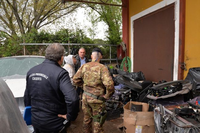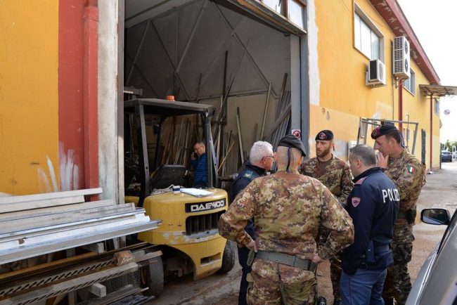 SANTA MARIA CAPUA VETERE – A seguito di un’operazione interforze in attuazione del Piano d’azione per il contrasto dei roghi dei rifiuti nei Comuni di San Tammaro, Santa Maria Capua Vetere, Mugnano di Napoli, Casoria, Polvica di Nola e Marano di Napoli, questa mattina 66 veicoli e 3 attività commerciali sono state sequestrate, 5 persone sono state denunciate all’Autorità giudiziaria mentre altre 9 persone sono state sanzionate amministrativamente per un totale di circa 13mila euro. In particolare, a Mugnano di Napoli, in seguito ad un sopralluogo condotto presso un opificio specializzato nella lavorazione di tappeti e moquettes, si è proceduto al sequestro dell’attività e di alcuni locali ad essa annessi in quanto risultati essere completamente abusivi. A Santa Maria Capua Vetere , a seguito dei controlli effettuati presso un’attività specializzata nella raccolta, messa in riserva e recupero di rifiuti non pericolosi, è stato posto sotto sequestro un capannone, adibito ad officina, all’interno del quale venivano illegalmente stoccati rifiuti anche pericolosi tra cui oli esausti e pneumatici, in violazione della normativa vigente in materia. Inoltre, sono state riscontrate violazioni alla normativa in materia di sicurezza sui luoghi di lavoro e identificati 6 lavoratori irregolari.