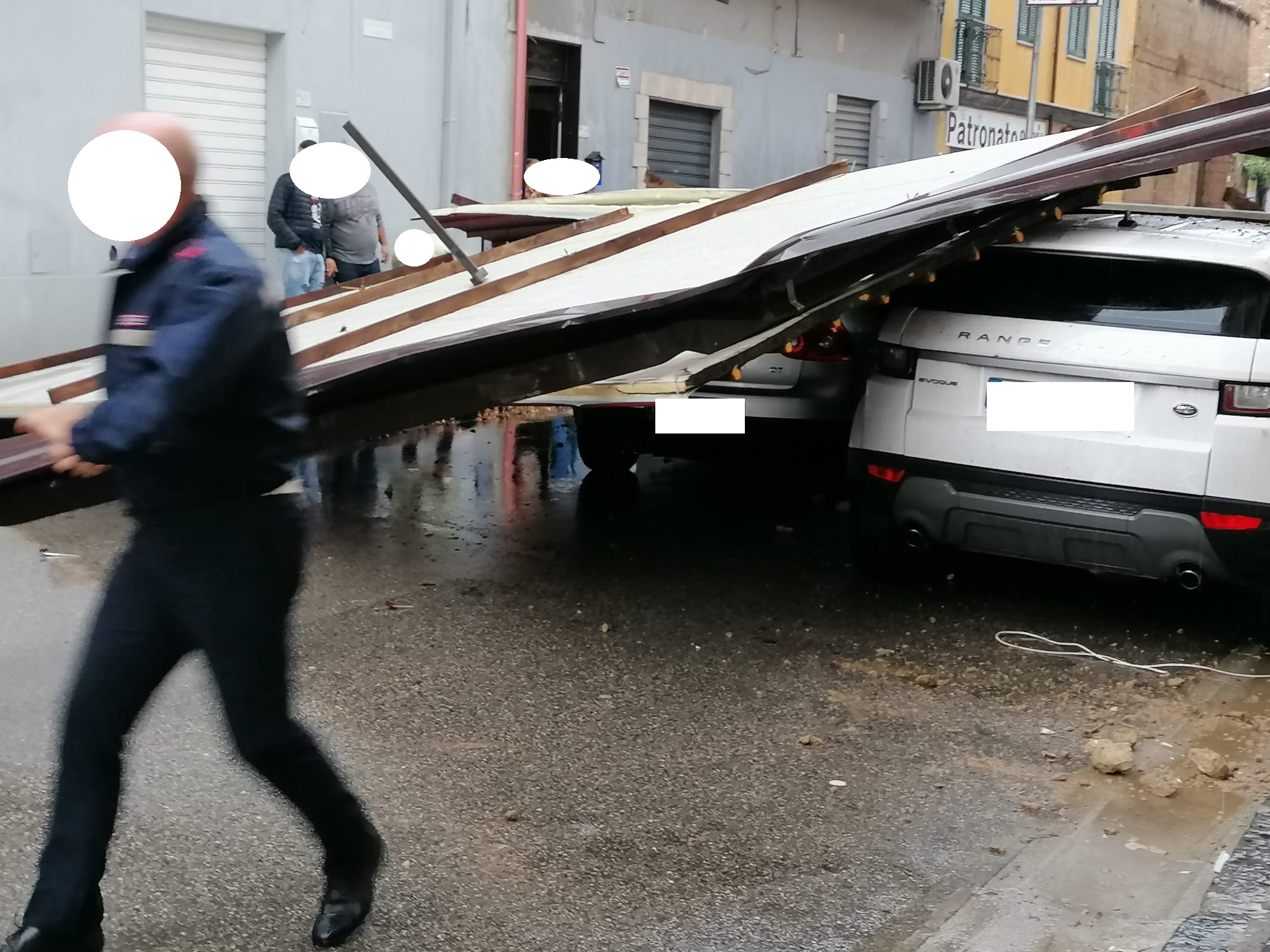 TUTTE LE FOTO MARCIANISE. Paura in via Musone. Copertura si scardina e piomba su due auto in strada