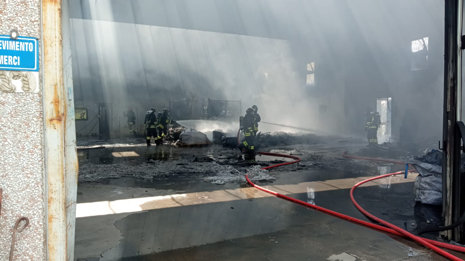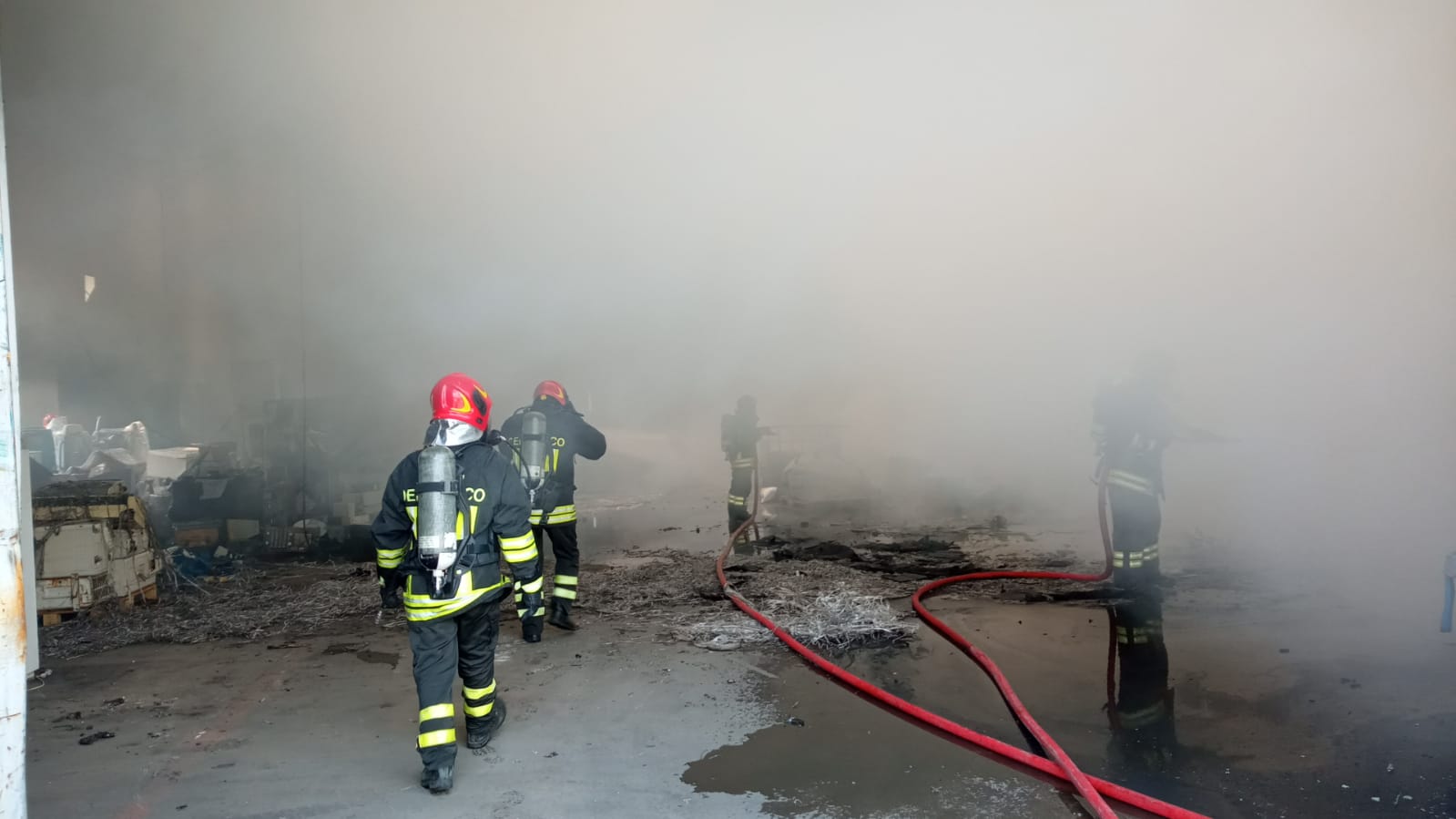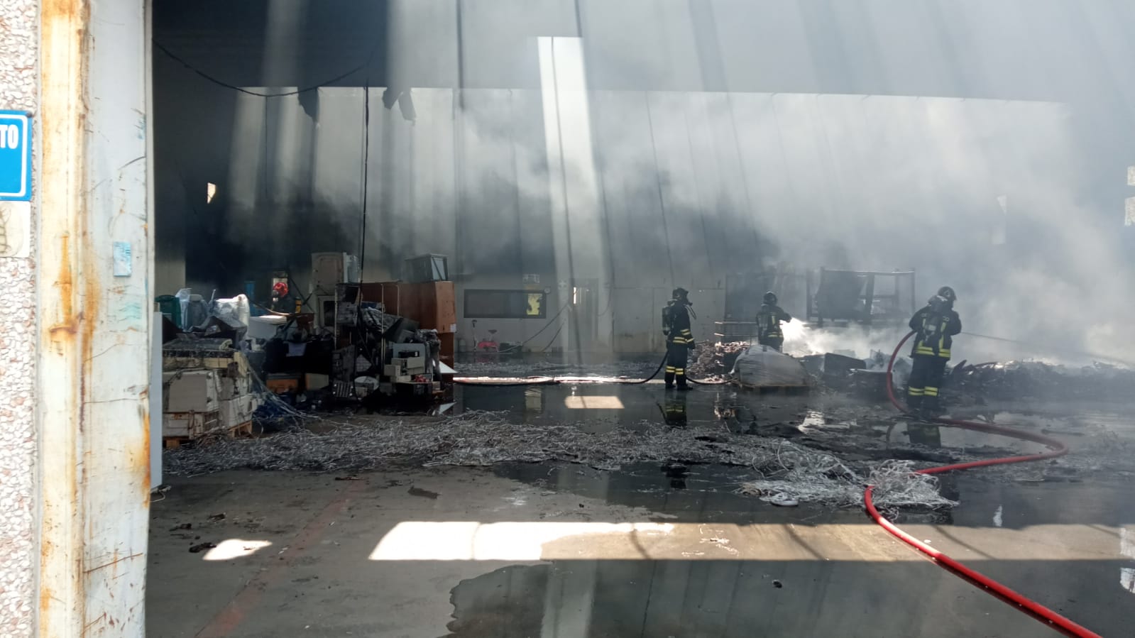 TUTTE LE FOTO. Rogo nel capannone di un’azienda rifiuti. Fumo nero invade la zona