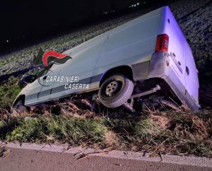 Sorpresi a rubare in un’azienda scatta l’inseguimento: ladri finiscono fuori strada, furgone in fiamme. 2 ARRESTI