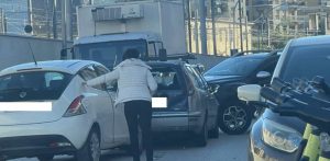 LA FOTO. CASERTA. Schianto tra una Dacia e altre due auto davanti alla pizzeria I Masanielli