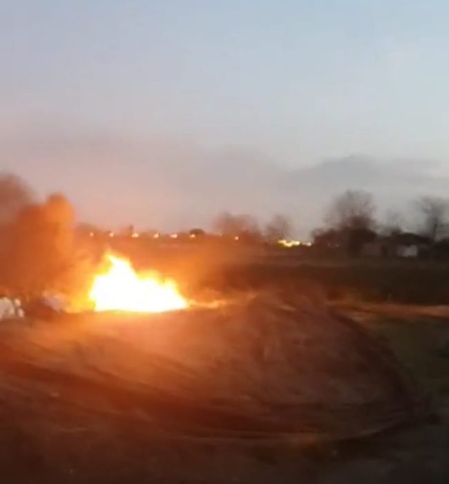 Le foto che vi proponiamo sono  screen della diretta della collega Marilena Natale. Sul posto accanto al rogo c’è la tanica di benzina.