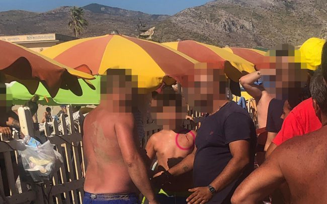 MONDRAGONE – L’estate per i ragazzini è sinonimo di sole, mare, spiaggia e divertimento. E mentre ci si diverte, a volte, ci scappa anche il litigio che, qui al sud, si sa, con il temperamento che ci ritroviamo, è facile passare dalle parole ai fatti. E’ successo nel pomeriggio di oggi, domenica, allo stabilimento balneare Kursaal di Mondragone, dove una banale lite tra bimbi si è trasformata prima in zuffa tra loro, come si può dedurre dalla ferita riportata da uno di loro nella foto e cerchiata in rosso, e poi in un mega “chiarimento” (ai più conosciuto come “vott’ a mme, vott’ a te/chi so je e chi si tu”) tra i genitori intervenuti per difendere ognuno il proprio pargolo. Il “chiarimento” ha coinvolto la partecipazione di mezzo lido, visto che, come si può notare da foto e video giunti in redazione, il nugolo di persone assembrate è davvero impressionante. Alla fine ci sembra di capire dalle immagini, che le cose si siano appianate e tutto è tornato alla normalità. Amen!